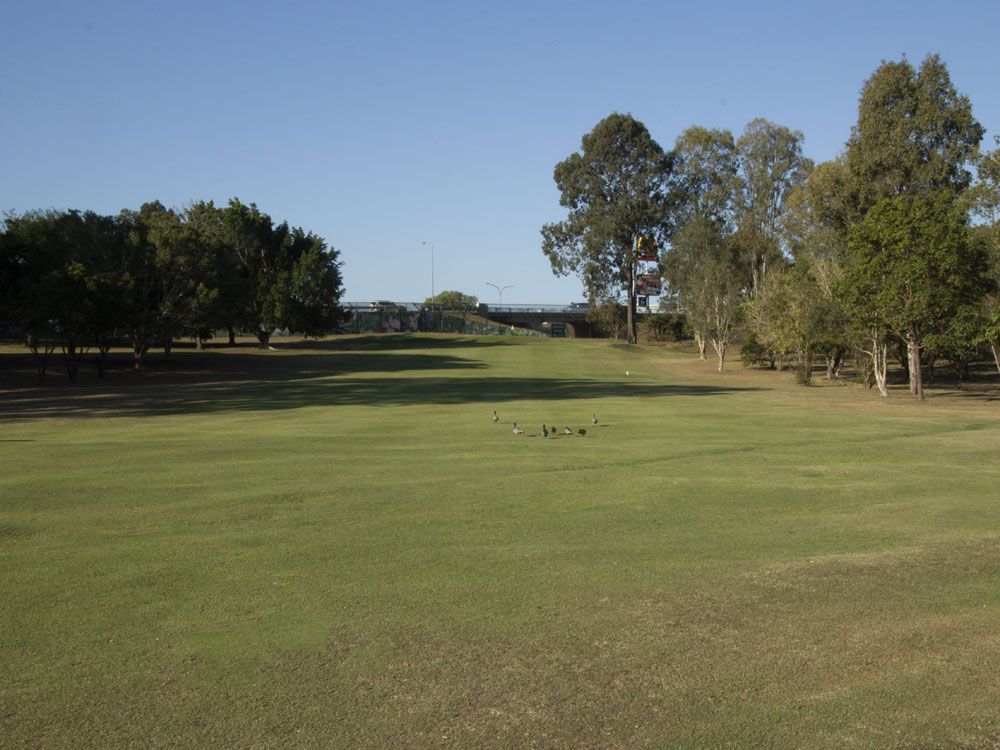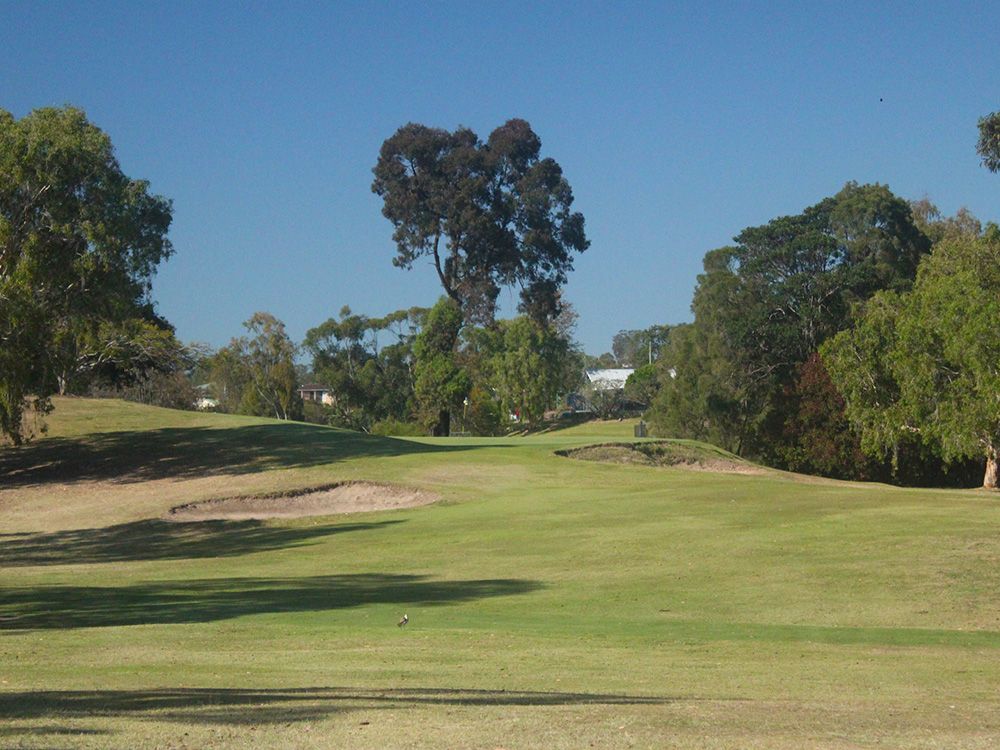 A good finishing hole, with out of bounds along the entire right hand side of the fairway where a water hazard 140 metres from the front of the tee crosses the fairway and continues up the left hand side of the fairway. You need to be able to hit your tee shot at least 170 metres from the back tee to carry this hazard. There are 3 large bunkers on the right hand side of the fairway. One at 210 metres from the tee and the other two at 215 metres. A large tree on the right hand side of the bridge will catch any shortish wayward shot to the right.